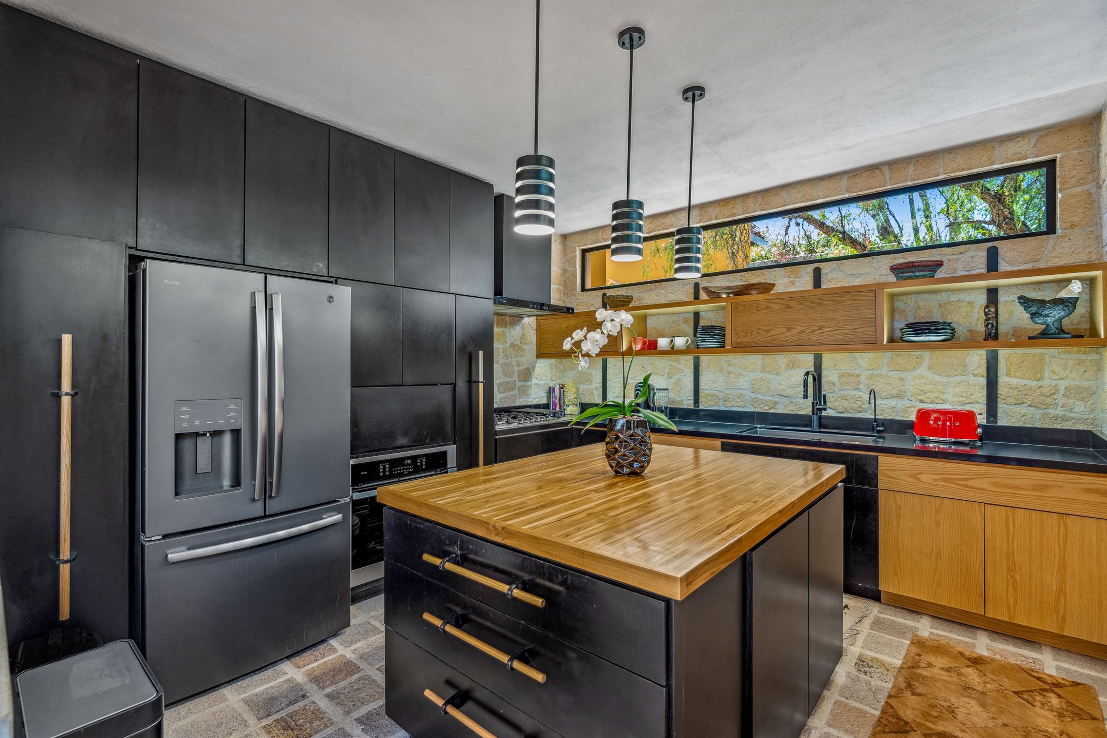 Esta magnífica casa ha sido meticulosamente remodelada en un estilo contemporáneo moderno, utilizando muchos elementos naturales que logran el equilibrio perfecto de elegancia, calidez y exquisito gusto. La sala de estar y las habitaciones están equipadas con sistemas de mini-split que proporcionan tanto calefacción como refrigeración para una comodidad durante todo el año.